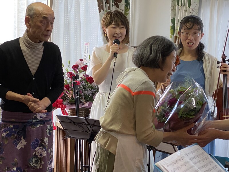 去る10月30日 13:00~、三ノ宮のサヨナラコンサートが仙台市太白区八本松の店舗内を貸し切りにして、これまでの50年間コーヒーとランチでお世話になった常連客43名が、『三ノ宮チーフ(松岡さん)&順子さん』へのこれまでの感謝と慰労を兼ねて演奏会が開催されました。